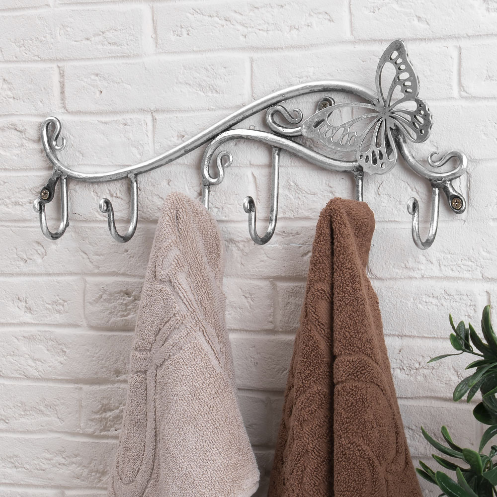 Вешалка настенная Бабочка Эир с 6-ю крючками Античное серебро