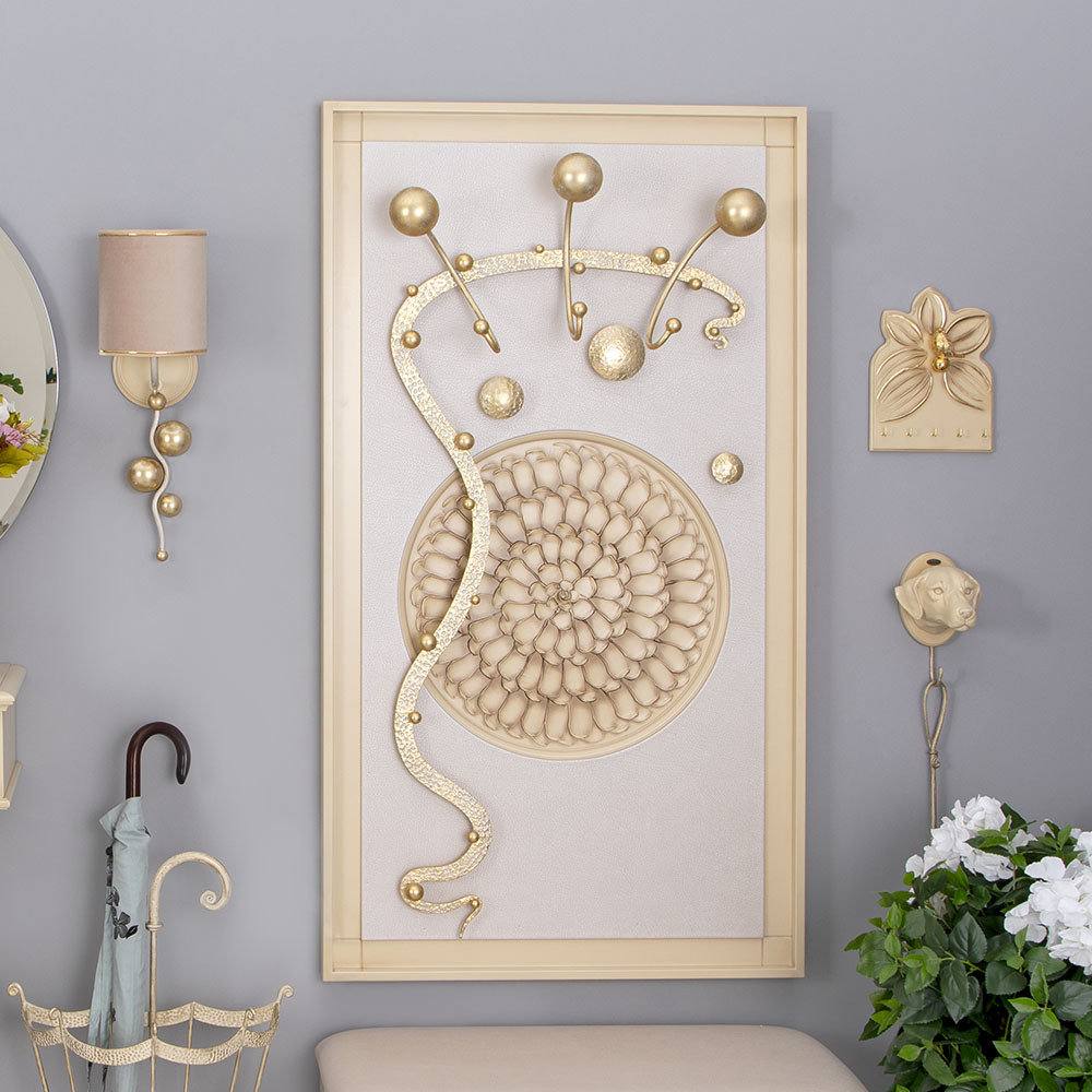 Интерьер, основанный на внутренних переживанияхКоллекция Heri, частью которой является эта вешалка, основана на уникальной технике Михаила Врубеля – технике скульптурной живописи энергичными широкими мазками, методике «объемного рисунка», который объединяет фигуру и пространство. Не стоит искать в представленных образах, фигурах, штрихах нечто реальное и рациональное. Каждый найдет свой собственный смысл, свое определение. Пусть это будет повод разбудить свое воображение и раскрывать внутренние подсознательные переживания. ФункционалЭто не просто стильный и оригинальный предмет интерьера, вешалка имеет соответствующий функционал. Большое количество удобных и прочных крючков позволяет разместить все необходимые вещи и аксессуары. При этом, даже при максимальной загрузке вешалка не перестает выделяться в интерьере и работать на общую концепцию помещения. Стопроцентное качествоВся фурнитура выполнена под заказ лучшими мастерами с применением самых современных технологий и высококачественных материалов. При изготовлении использовались МДФ, искусственная кожа, кованая сталь, мраморная пудра.