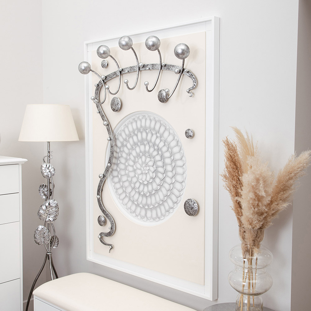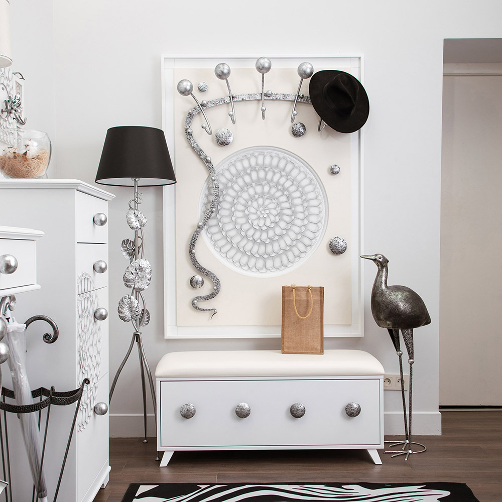Интерьер, основанный на внутренних переживанияхКоллекция Heri, частью которой является эта вешалка, основана на уникальной технике Михаила Врубеля – технике скульптурной живописи энергичными широкими мазками, методике «объемного рисунка», который объединяет фигуру и пространство. Не стоит искать в представленных образах, фигурах, штрихах нечто реальное и рациональное. Каждый найдет свой собственный смысл, свое определение. Пусть это будет повод разбудить свое воображение и раскрывать внутренние подсознательные переживания. ФункционалЭто не просто стильный и оригинальный предмет интерьера, вешалка имеет соответствующий функционал. Большое количество удобных и прочных крючков позволяет разместить все необходимые вещи и аксессуары. При этом, даже при максимальной загрузке вешалка не перестает выделяться в интерьере и работать на общую концепцию помещения. Стопроцентное качествоВся фурнитура выполнена под заказ лучшими мастерами с применением самых современных технологий и высококачественных материалов. При изготовлении использовались МДФ, искусственная кожа, кованая сталь, мраморная пудра.