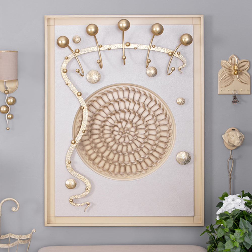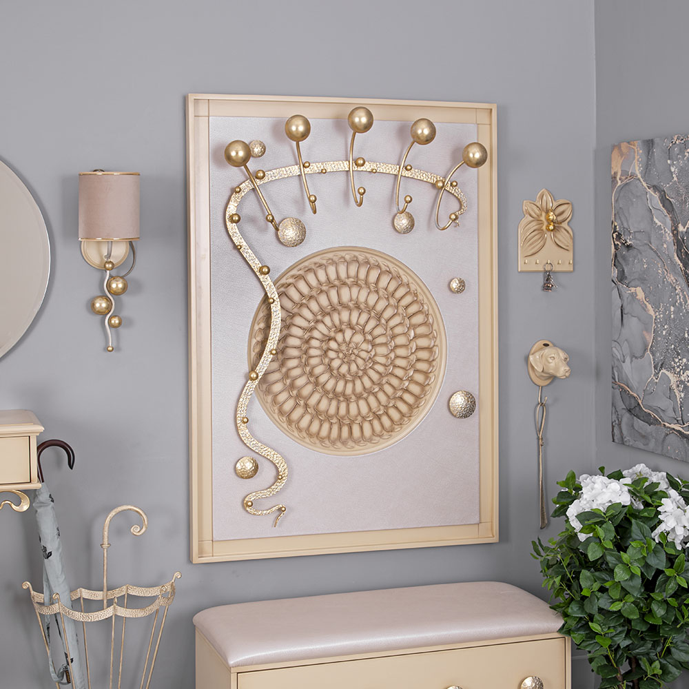 Интерьер, основанный на внутренних переживанияхКоллекция Heri, частью которой является эта вешалка, основана на уникальной технике Михаила Врубеля – технике скульптурной живописи энергичными широкими мазками, методике «объемного рисунка», который объединяет фигуру и пространство. Не стоит искать в представленных образах, фигурах, штрихах нечто реальное и рациональное. Каждый найдет свой собственный смысл, свое определение. Пусть это будет повод разбудить свое воображение и раскрывать внутренние подсознательные переживания. ФункционалЭто не просто стильный и оригинальный предмет интерьера, вешалка имеет соответствующий функционал. Большое количество удобных и прочных крючков позволяет разместить все необходимые вещи и аксессуары. При этом, даже при максимальной загрузке вешалка не перестает выделяться в интерьере и работать на общую концепцию помещения. Стопроцентное качествоВся фурнитура выполнена под заказ лучшими мастерами с применением самых современных технологий и высококачественных материалов. При изготовлении использовались МДФ, искусственная кожа, кованая сталь, мраморная пудра.