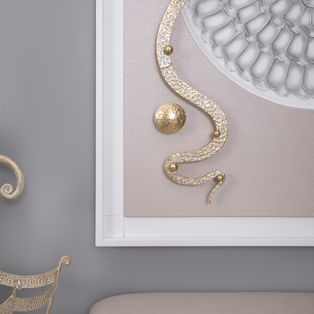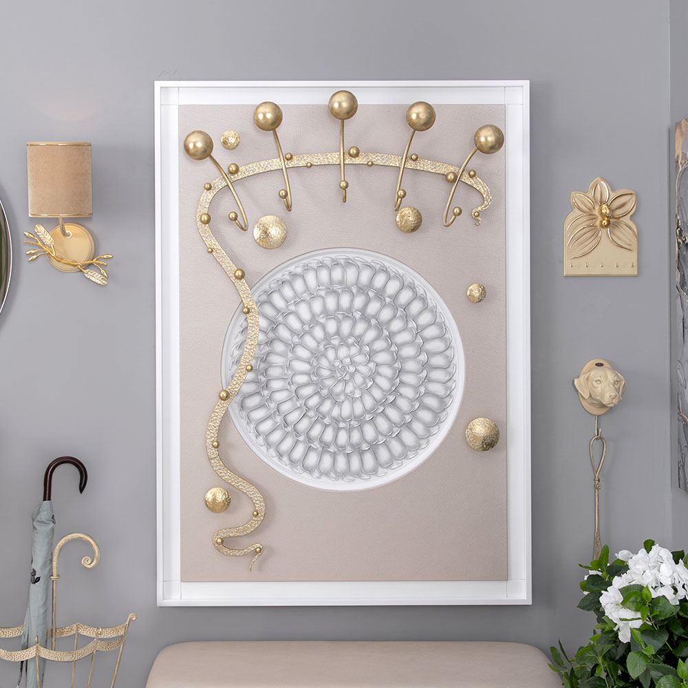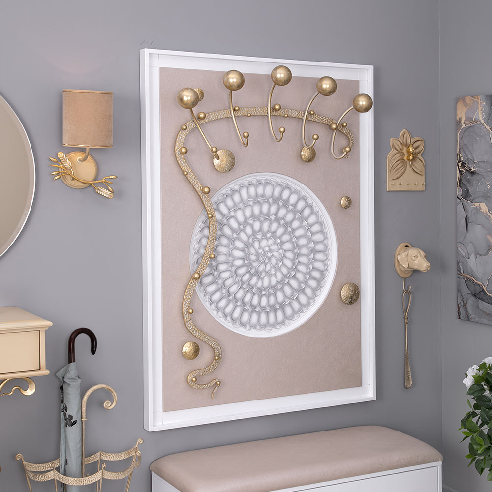 Интерьер, основанный на внутренних переживанияхКоллекция Heri, частью которой является эта вешалка, основана на уникальной технике Михаила Врубеля – технике скульптурной живописи энергичными широкими мазками, методике «объемного рисунка», который объединяет фигуру и пространство. Не стоит искать в представленных образах, фигурах, штрихах нечто реальное и рациональное. Каждый найдет свой собственный смысл, свое определение. Пусть это будет повод разбудить свое воображение и раскрывать внутренние подсознательные переживания. ФункционалЭто не просто стильный и оригинальный предмет интерьера, вешалка имеет соответствующий функционал. Большое количество удобных и прочных крючков позволяет разместить все необходимые вещи и аксессуары. При этом, даже при максимальной загрузке вешалка не перестает выделяться в интерьере и работать на общую концепцию помещения. Стопроцентное качествоВся фурнитура выполнена под заказ лучшими мастерами с применением самых современных технологий и высококачественных материалов. При изготовлении использовались МДФ, искусственная кожа, кованая сталь, мраморная пудра.