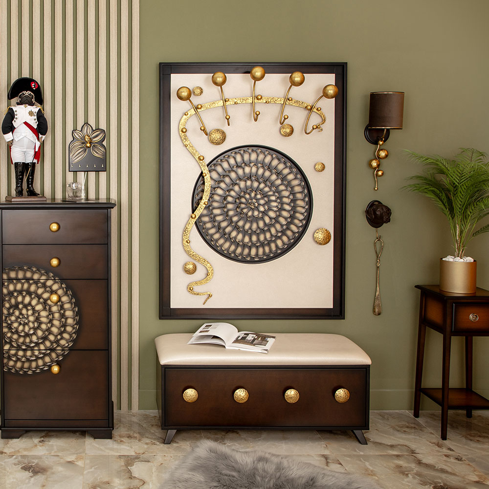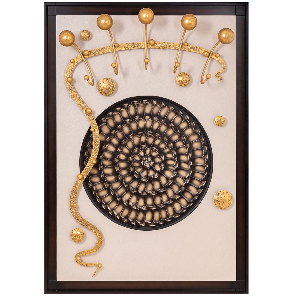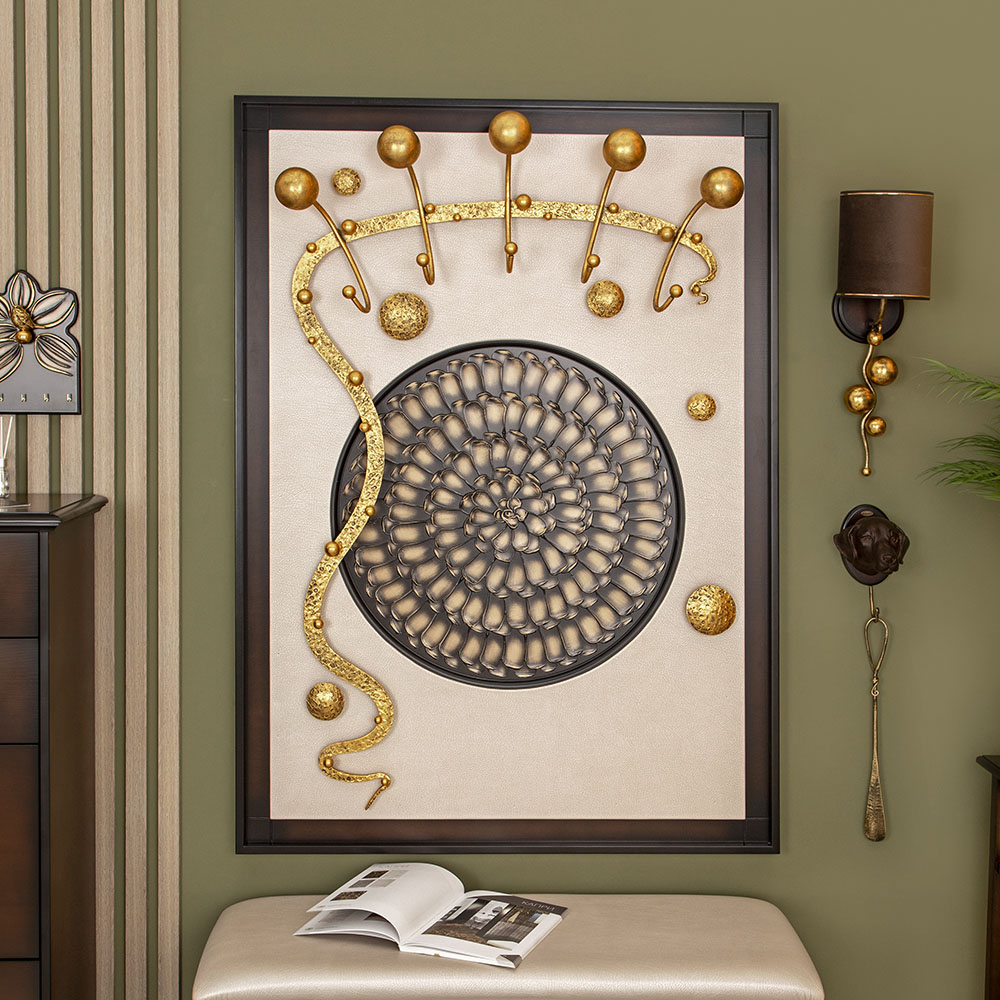 Интерьер, основанный на внутренних переживанияхКоллекция Heri, частью которой является эта вешалка, основана на уникальной технике Михаила Врубеля – технике скульптурной живописи энергичными широкими мазками, методике «объемного рисунка», который объединяет фигуру и пространство. Не стоит искать в представленных образах, фигурах, штрихах нечто реальное и рациональное. Каждый найдет свой собственный смысл, свое определение. Пусть это будет повод разбудить свое воображение и раскрывать внутренние подсознательные переживания. ФункционалЭто не просто стильный и оригинальный предмет интерьера, вешалка имеет соответствующий функционал. Большое количество удобных и прочных крючков позволяет разместить все необходимые вещи и аксессуары. При этом, даже при максимальной загрузке вешалка не перестает выделяться в интерьере и работать на общую концепцию помещения. Стопроцентное качествоВся фурнитура выполнена под заказ лучшими мастерами с применением самых современных технологий и высококачественных материалов. При изготовлении использовались МДФ, искусственная кожа, кованая сталь, мраморная пудра.