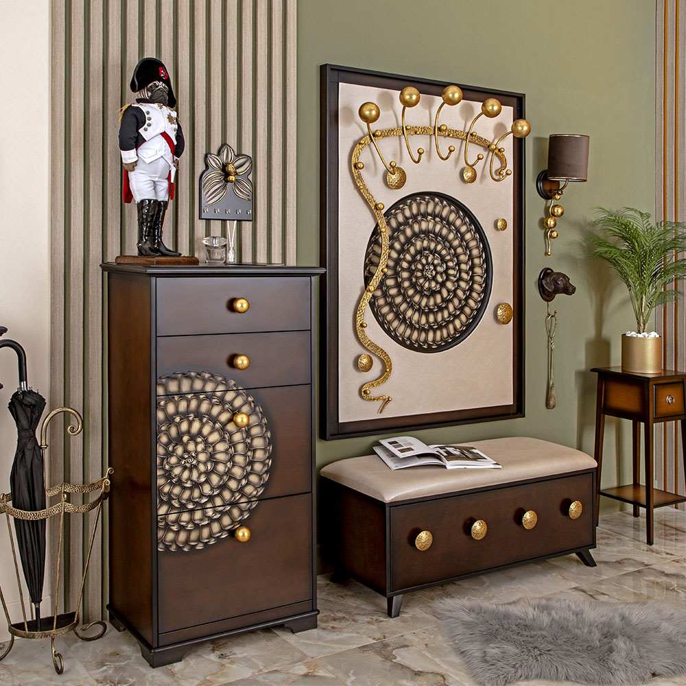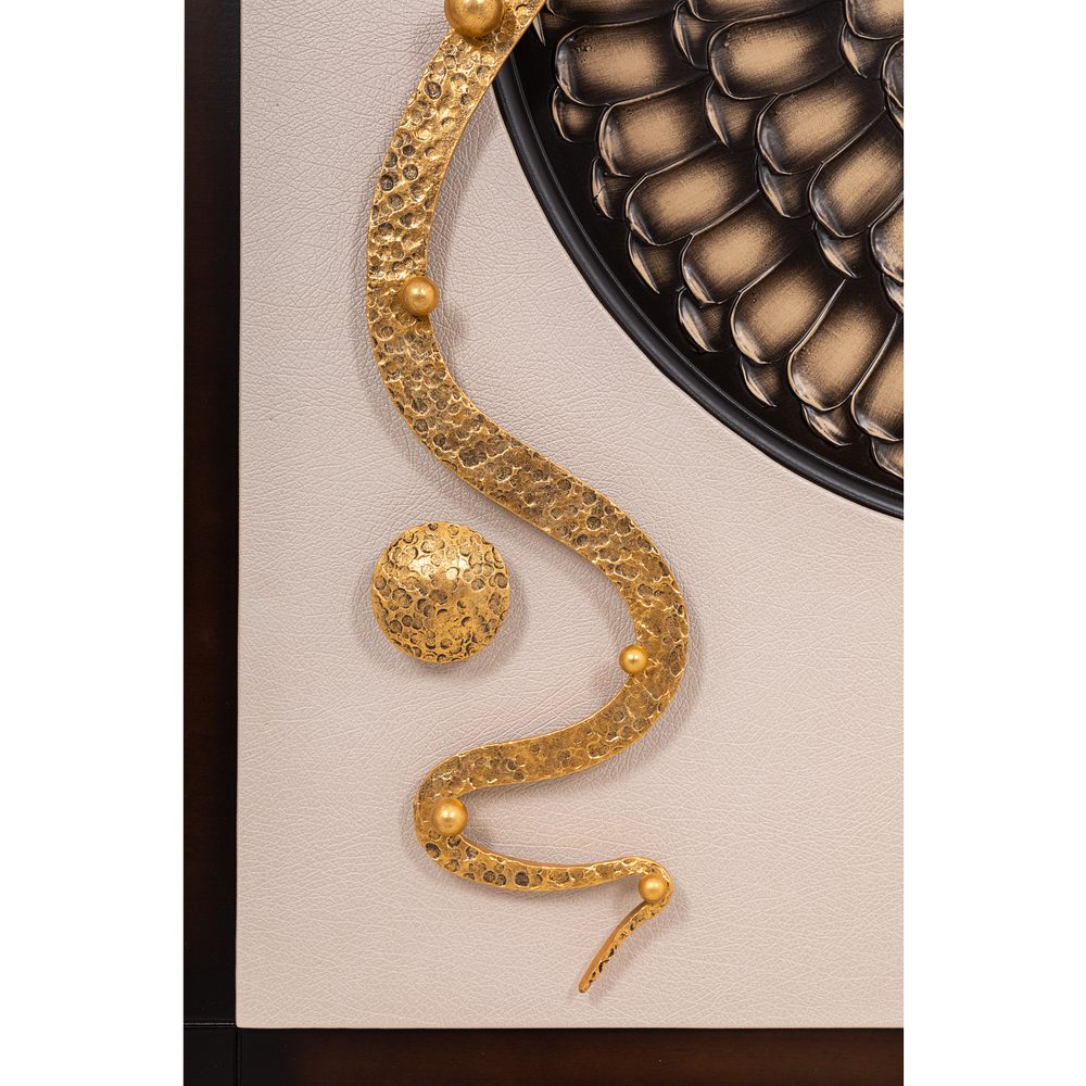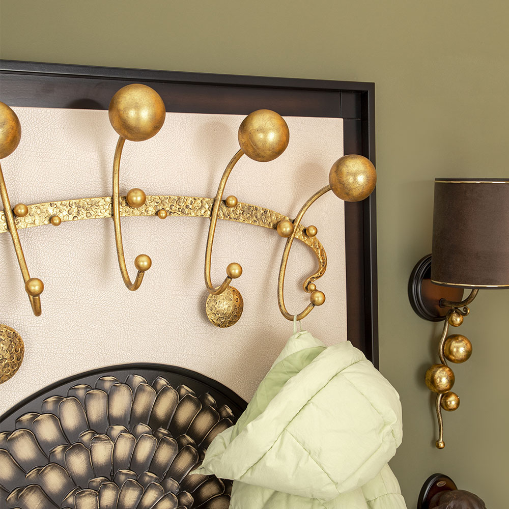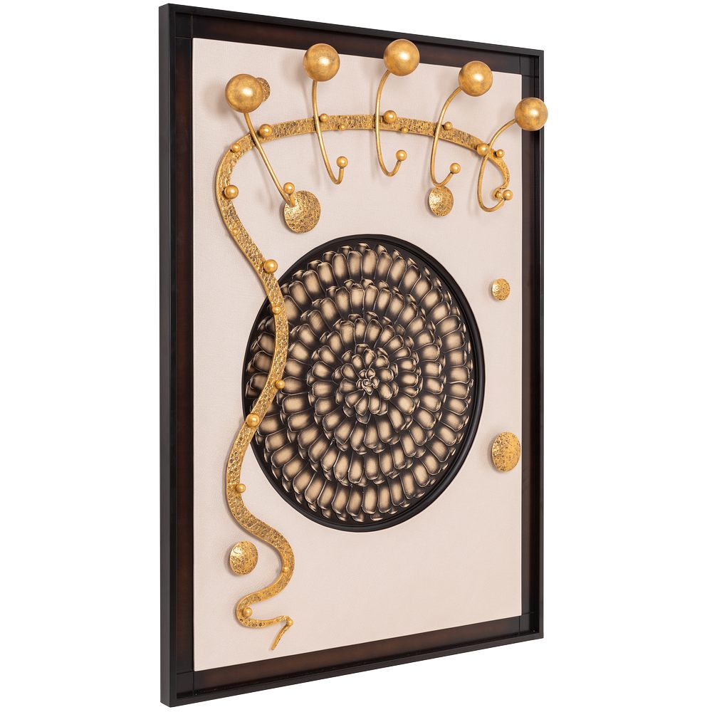 Интерьер, основанный на внутренних переживанияхКоллекция Heri, частью которой является эта вешалка, основана на уникальной технике Михаила Врубеля – технике скульптурной живописи энергичными широкими мазками, методике «объемного рисунка», который объединяет фигуру и пространство. Не стоит искать в представленных образах, фигурах, штрихах нечто реальное и рациональное. Каждый найдет свой собственный смысл, свое определение. Пусть это будет повод разбудить свое воображение и раскрывать внутренние подсознательные переживания. ФункционалЭто не просто стильный и оригинальный предмет интерьера, вешалка имеет соответствующий функционал. Большое количество удобных и прочных крючков позволяет разместить все необходимые вещи и аксессуары. При этом, даже при максимальной загрузке вешалка не перестает выделяться в интерьере и работать на общую концепцию помещения. Стопроцентное качествоВся фурнитура выполнена под заказ лучшими мастерами с применением самых современных технологий и высококачественных материалов. При изготовлении использовались МДФ, искусственная кожа, кованая сталь, мраморная пудра.