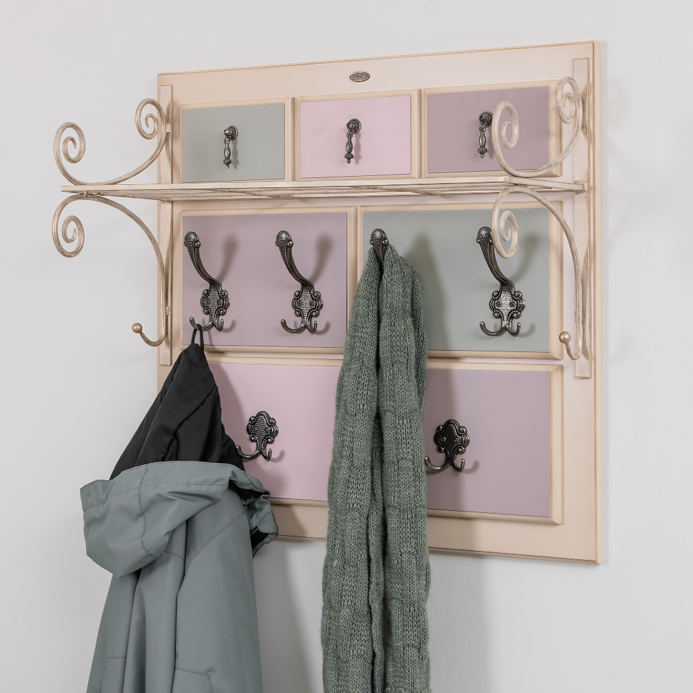 Мебель, которая вдохновляетИногда предметы мебели начинают играть более значительную роль в интерьере. Они не только несут практический смысл, но еще и эстетически-эмоциональный. Они способны вдохновлять. Как, например, эта настенная вешалка - яркий представитель коллекции «Пандора», имеющей характерные черты импрессионизма. Эстетика этого стиля проявляется во всем - внешних формах, внутреннем содержании, в цветовых решениях. Креативная практичность и стопроцентное качествоНастенная вешалка «Пандора» сочетает в себе элегантность, оригинальность и максимальную практичность. Большое количество удобных крючков и кованая полка позволяют разместить все необходимые вещи и аксессуары. При этом формат вешалки позволяет ей, даже при максимальной загрузке, выделяться в интерьере! Возможность для импровизацииКоллекция предусматривает оригинальную цветовую гамму. Можно выбрать подходящее сочетание вешалки, которое без труда впишется в уже существующую цветовую палитру помещения.