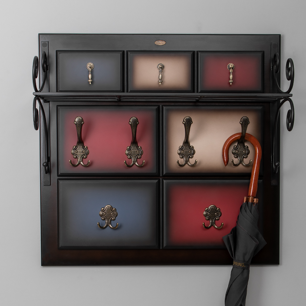 Мебель, которая вдохновляетИногда предметы мебели начинают играть более значительную роль в интерьере. Они не только несут практический смысл, но еще и эстетически-эмоциональный. Они способны вдохновлять. Как, например, эта настенная вешалка - яркий представитель коллекции «Пандора», имеющей характерные черты импрессионизма. Эстетика этого стиля проявляется во всем - внешних формах, внутреннем содержании, в цветовых решениях. Креативная практичность и стопроцентное качествоНастенная вешалка «Пандора» сочетает в себе элегантность, оригинальность и максимальную практичность. Большое количество удобных крючков и кованая полка позволяют разместить все необходимые вещи и аксессуары. При этом формат вешалки позволяет ей, даже при максимальной загрузке, выделяться в интерьере! Возможность для импровизацииКоллекция предусматривает оригинальную цветовую гамму. Можно выбрать подходящее сочетание вешалки, которое без труда впишется в уже существующую цветовую палитру помещения.