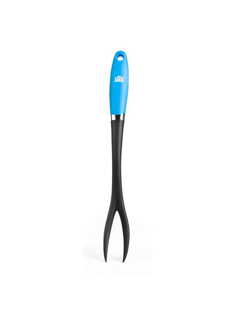 Вилка для мяса Stahlberg Pluton 9951-S. Размер 33,6х4 см. Вилка сделана из нейлона, поэтому ее можно использовать со сковородами, имеющими антипригарное покрытие. Ручка пластиковая, светло-голубого цвета, с петлей для подвешивания. Вилкой удобно переворачивать стейки или раскладывать мясо по тарелкам.
