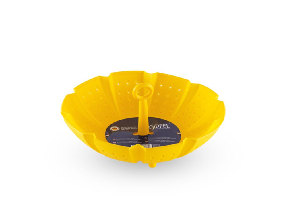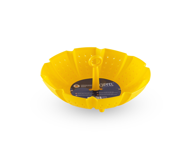 Подставка для варки на пару Gipfel 1387. Подставка силиконовая на ножках диаметром 23 см, диаметром дна 13 см. Подставка выполнена из силикона, что позволяет не опасаться за антипригарное покрытие кастрюли, она не поцарапает внутренние стенки. Мягкий силикон позволяет готовить как в кастрюлях большего, так и в кастрюлях меньшего диаметра. Материал: силикон, пластик. Цвет: желтый.