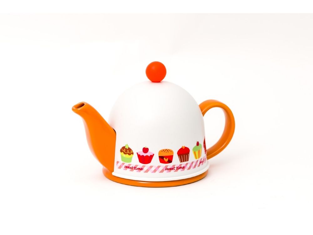 3846 Gipfel Чайник заварочный керамический ARONDO 400мл с пластиковым утепленным колпаком и ситом. Цвет: Оранжевый.
