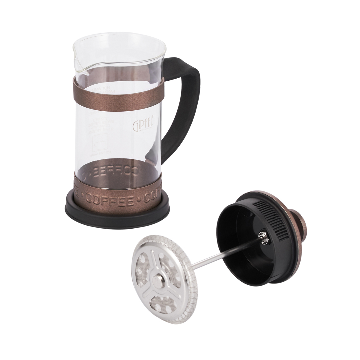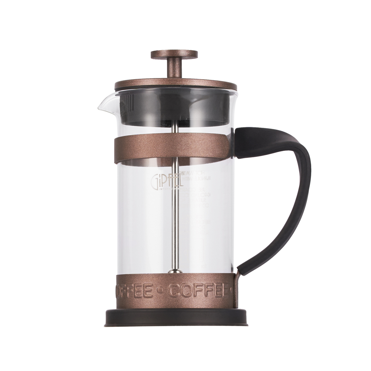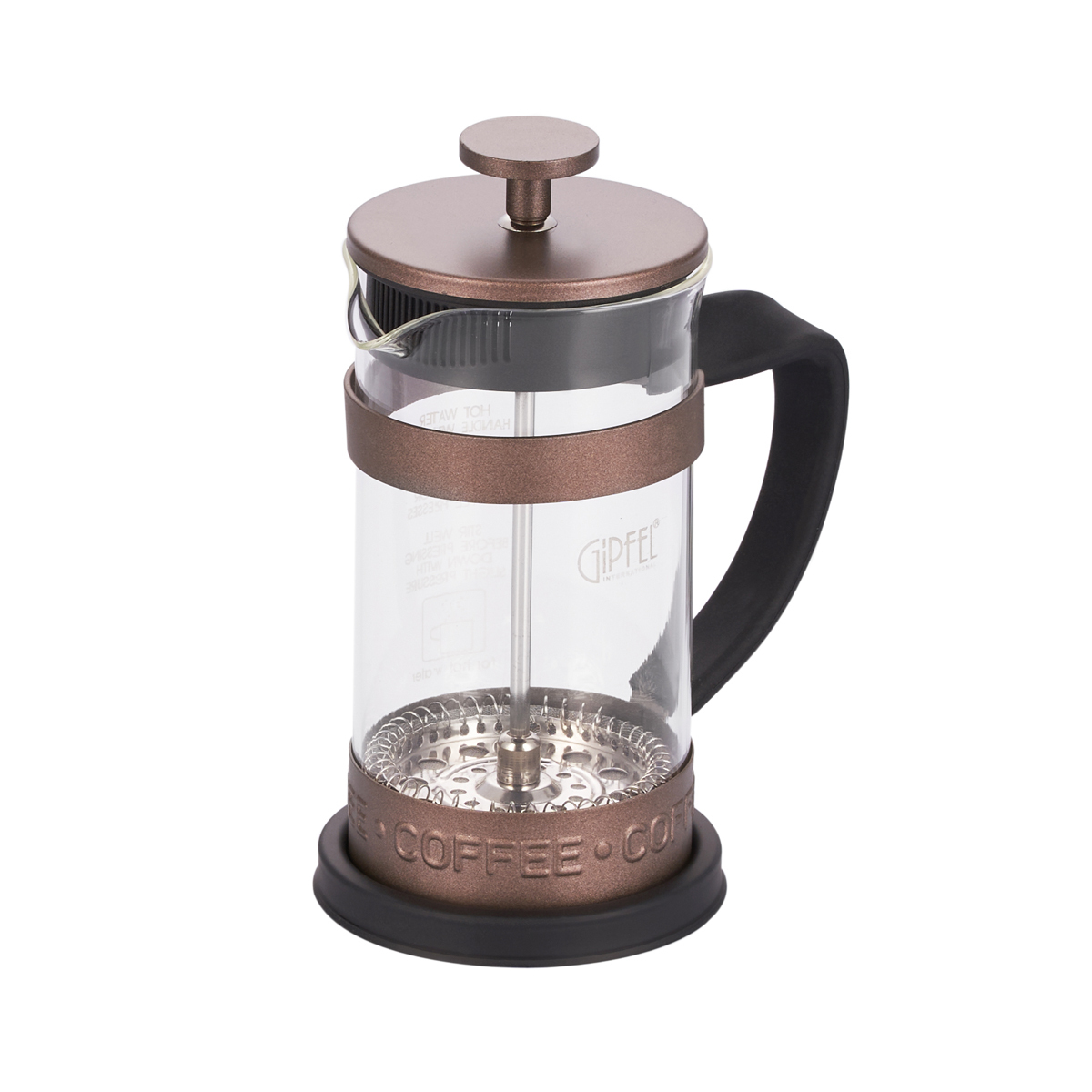7843 GIPFEL Стеклянный заварочный чайник с поршнем GLACIER - JAKARTA на 3 чашки/ 350 мл (коричневая оправа, черная пластиковая ручка)