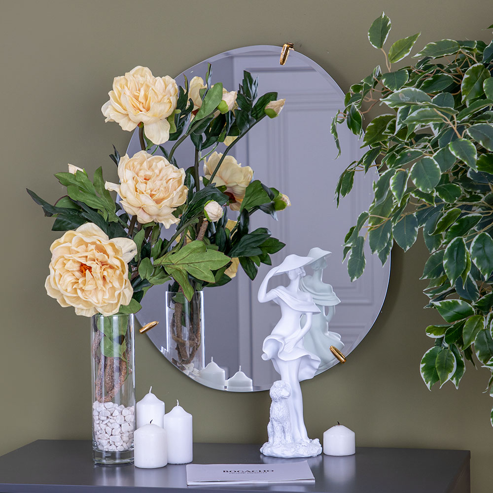 Настенное зеркало от российской фабрики мебели BOGACHO, эффектный предмет интерьера, который позволит создать в вашем доме изысканную обстановку. Сегодня зеркало большое является неотъемлемой частью стиля комнаты, офиса, кафе или ресторана.Зеркало настенное можно разместить в любой комнате дома, она гармонично будет смотреться в классическом интерьере, лофт, скандинавский стиль Ikea (икеа).Изюминка изделия – шикарная рама – ручная работа мастеров фабрики. Зеркало на стену исполнено по мотивам зарубежных тенденций в мире дизайна интерьеров.Зеркало интерьерное не только помогает любоваться собой, но и визуально расширяет пространство комнаты или офиса. Зеркало настенное станет не только практичным элементом вашего интерьера, но и прекрасным декором для дома и уюта. Оно идеально подойдет для использования в ванной комнате, где вы сможете проверить свой образ перед выходом из дома, а также в прихожей или коридоре, чтобы убедиться, что вы выглядите на все сто.Это большое зеркало также прекрасно подойдет для использования в спальне, гостиной или детской комнате. Его интерьерный дизайн позволяет сочетать его с мебелью и другими предметами интерьера в различных стилях, таких как лофт или скандинавский стиль, а также классический стиль.Зеркало настенное также может быть использовано в качестве зеркала для макияжа благодаря своей большой поверхности. Кроме того, оно может быть использовано как зеркальное панно, чтобы создать уникальную атмосферу в вашем доме.Зеркало - это оригинальный подарок на любой праздник. Подарите этот прекрасный предмет интерьера, который подчеркнет красоту и стиль. Зеркало завернуто в воздушно - пузырчатую пленку, ложемент и надежно упакован в коробку из гофрированного картона, поэтому данный аксессуар для интерьера приедет к вам не поврежденным. Любите, чтобы интерьер был в едином стиле? Присмотритесь к продукции BOGACHO, которая будет гармонично сочетаться друг с другом.