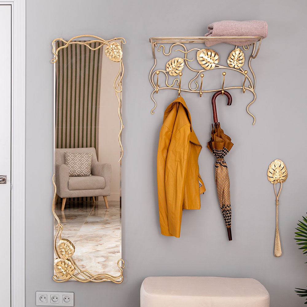 Зеркало настенное Monstera Deliciosa (Монстера) 140 Айвори Мраморное золото