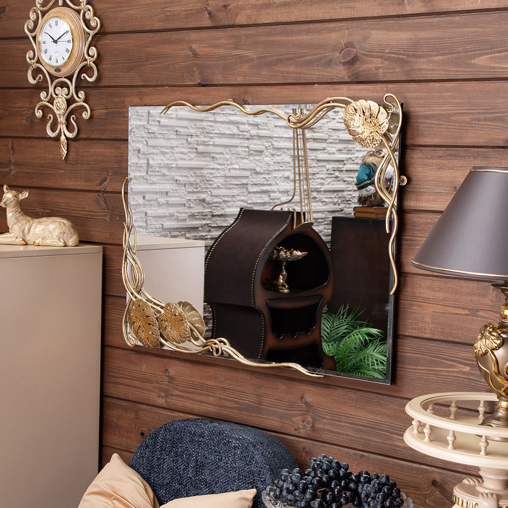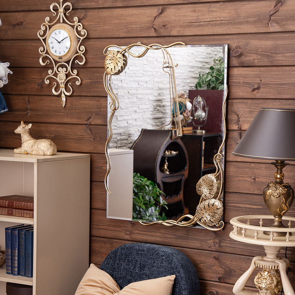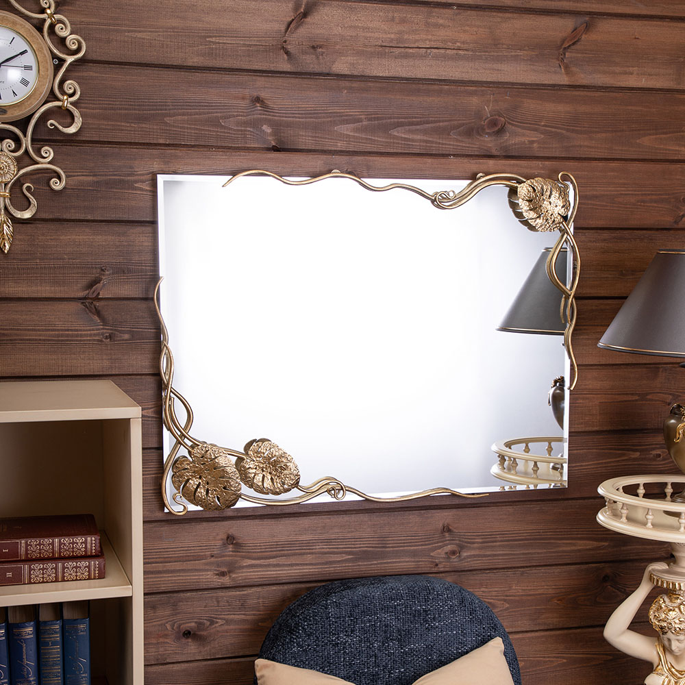 Зеркало настенное Monstera Deliciosa (Монстера) прямоугольное 80х60 Бронза