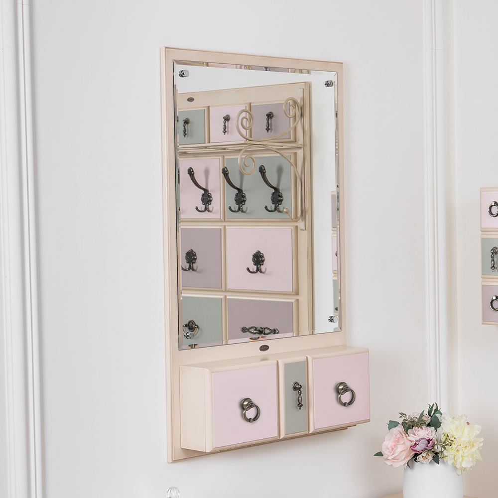 Элегантный ящик, оформленный в стиле рококо, функционален: в нём можно хранить важные мелочи и драгоценности. Настенное зеркало с ящиком можно разместить в коридоре – удобно держать всё самое нужное прямо у двери! Размер зеркального полотна: 63см х 53см. Толщина: 4мм.