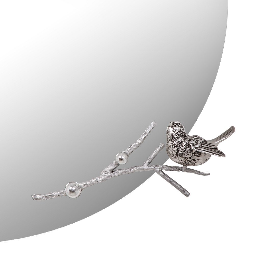 Птички зарянки отличаются дружелюбием, смелым характером, звонким голосом и сказочным оперениемИногда их ещё называют малиновками – за красивые яркие пёрышки на грудке. Их заливистое пение по утрам способно порадовать даже самых серьёзных и задумчивых людей! Птицы зарянки – это, несомненно, символ русской весныМаленькие юркие птички, суетящиеся на ветвях малиновыми стайками, всегда вдохновляли творческих людей на лучшие стихи и картины. Наши дизайнеры тоже не смогли пройти мимо этих милых созданий, и поэтому придумали коллекцию Терра, где на каждом изделии поселились чудесные птички, чтобы поднимать Вам настроение каждый день и охранять уют Вашего дома. Пение птиц – всегда благой знак, знаменующий счастливые моменты, везение и тёплые встречи. Зеркало «Терра» выглядит лаконично, элегантно и праздничноНа декоративных ветвях из кованой стали расположились маленькие птички, они словно только что вернулись из тёплого края и приветствуют весну, напевая свои звонкие мелодии. Это зеркало – тонкая и аккуратная ручная работа, в которую мастера фабрики BOGACHO действительно вложили душу.