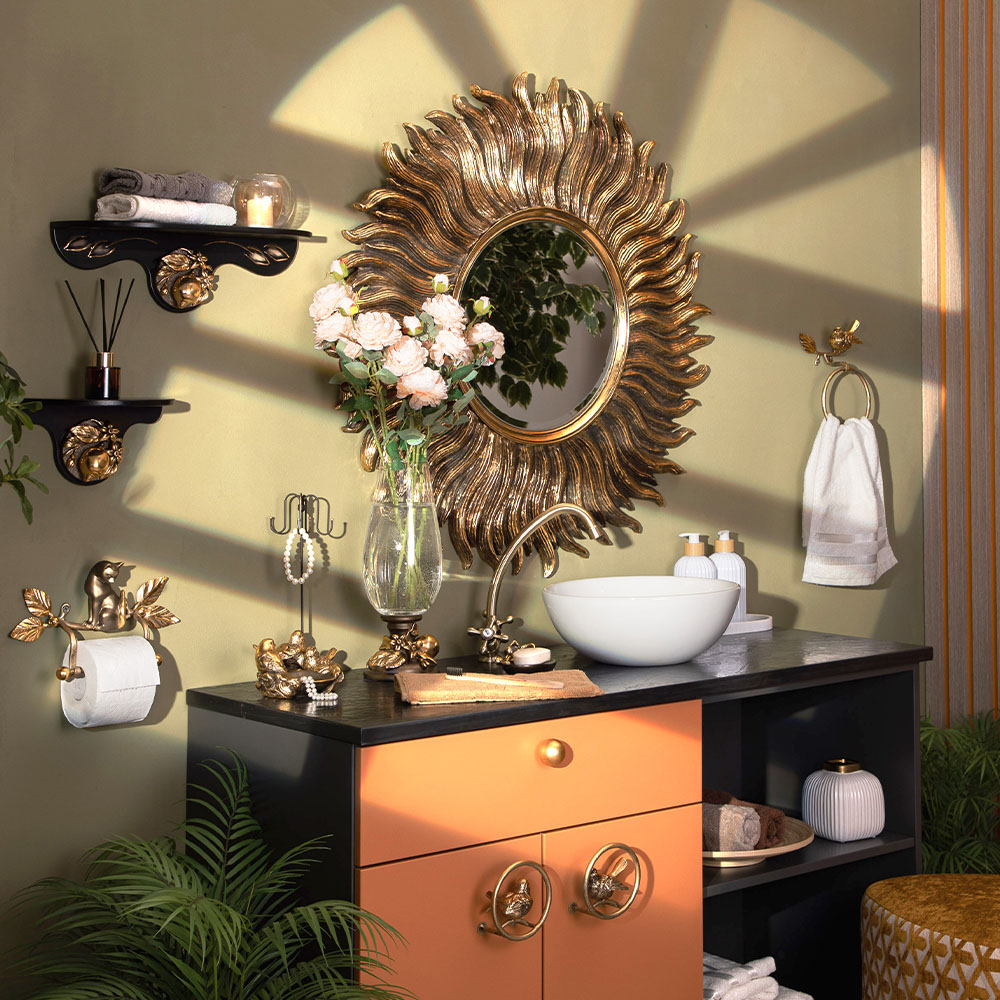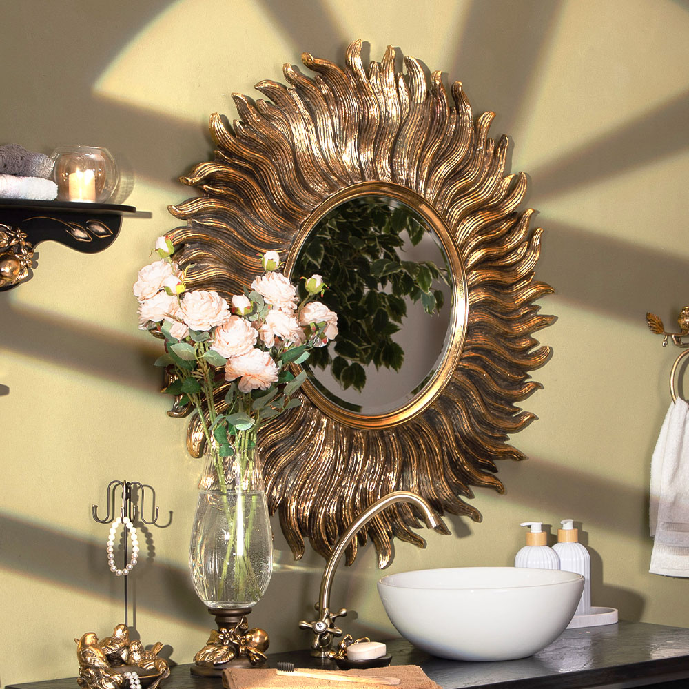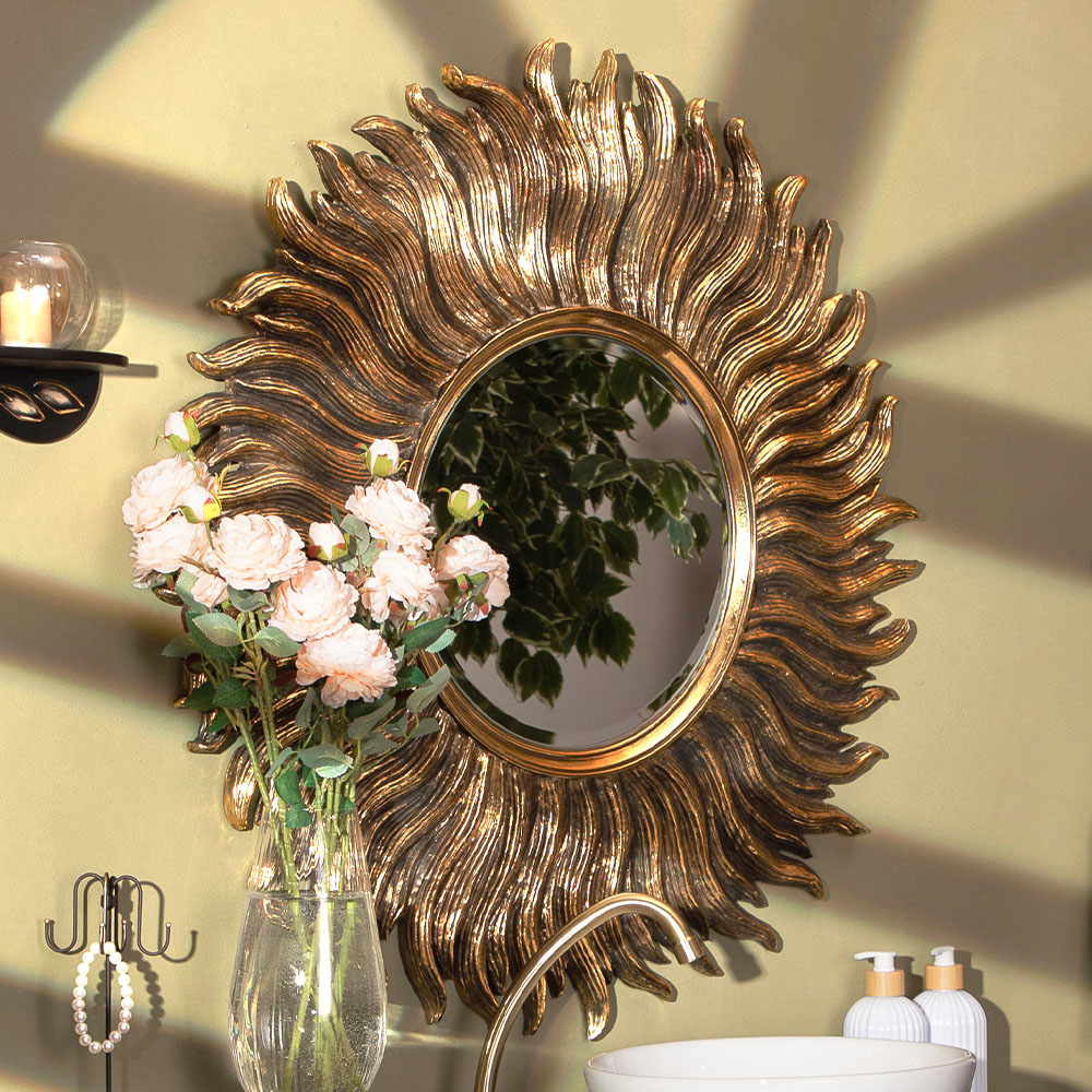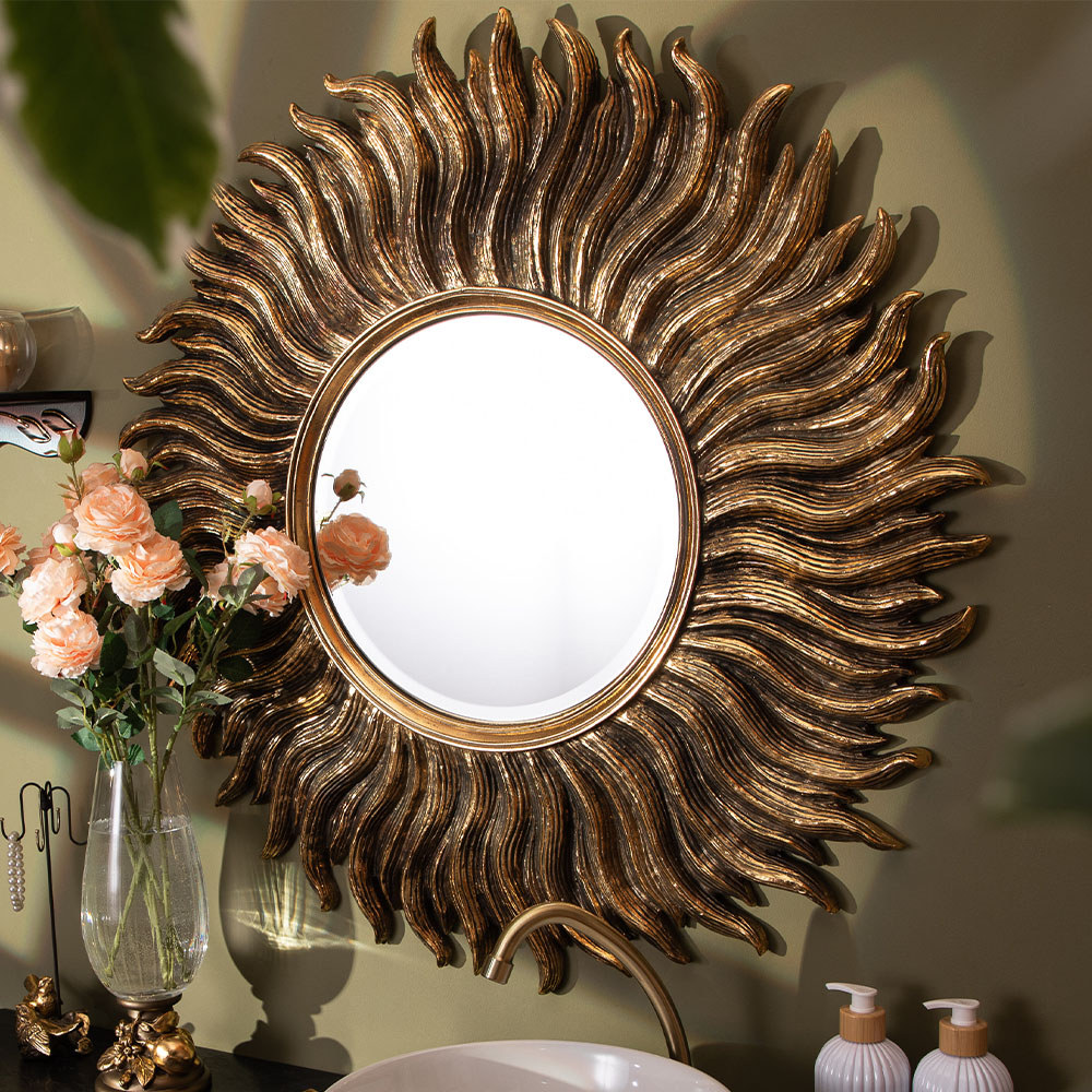 Пусть всегда будет солнце!Хорошо, когда светит солнце! Его лучи воодушевляют и заставляют радоваться жизни. Отлично иметь собственное солнце в интерьере! Оно тоже может стать источником хорошего настроения, вдохновения, особенно, если оно такое красивое и необычное, как это зеркало. Оригинальное дизайнерское решение, стильный, притягательный и невероятно атмосферный предмет мебели. Зеркало «Солнце» будто сошло со страниц произведений Александра Пушкина или пришло к нам из народных сказок. Впрочем, каждый может найти свой собственный смысл, свое определение, ведь это зеркало является частью одной из самых удивительных коллекций BOGACHO!