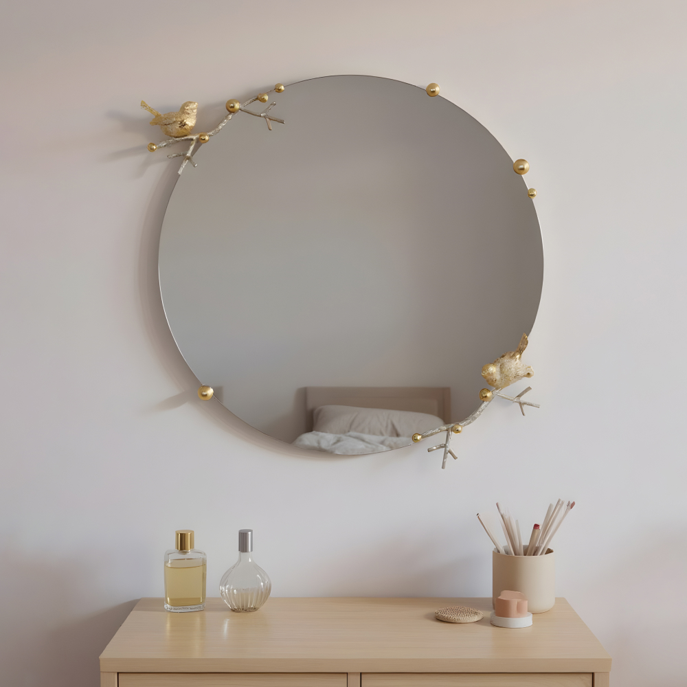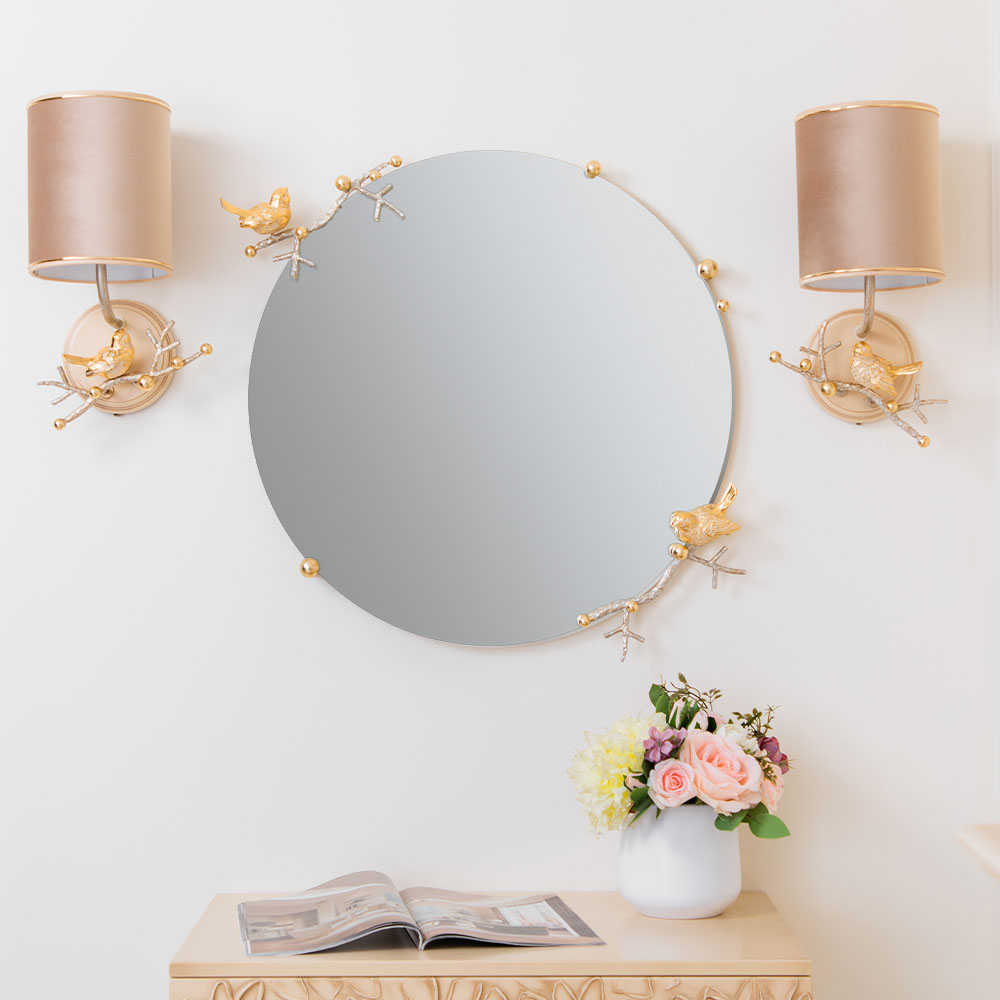 Птички зарянки отличаются дружелюбием, смелым характером, звонким голосом и сказочным оперениемИногда их ещё называют малиновками – за красивые яркие пёрышки на грудке. Их заливистое пение по утрам способно порадовать даже самых серьёзных и задумчивых людей! Птицы зарянки – это, несомненно, символ русской весныМаленькие юркие птички, суетящиеся на ветвях малиновыми стайками, всегда вдохновляли творческих людей на лучшие стихи и картины. Наши дизайнеры тоже не смогли пройти мимо этих милых созданий, и поэтому придумали коллекцию Терра, где на каждом изделии поселились чудесные птички, чтобы поднимать Вам настроение каждый день и охранять уют Вашего дома. Пение птиц – всегда благой знак, знаменующий счастливые моменты, везение и тёплые встречи. Зеркало «Терра» выглядит лаконично, элегантно и праздничноНа декоративных ветвях из кованой стали расположились маленькие птички, они словно только что вернулись из тёплого края и приветствуют весну, напевая свои звонкие мелодии. Это зеркало – тонкая и аккуратная ручная работа, в которую мастера фабрики BOGACHO действительно вложили душу. Для создания наших зеркал используются уникальные и безопасные материалы: это гарантия долговечности и качества. Диаметр зеркального полотна: 60см. Толщина: 4мм. Хотите приютить у себя очаровательных птичек-зарянок? Купите зеркало из коллекции «Терра» от BOGACHO, и они заворожат Вас своими обаянием!