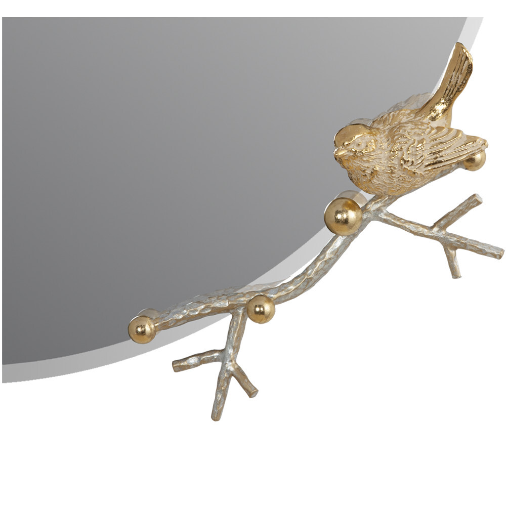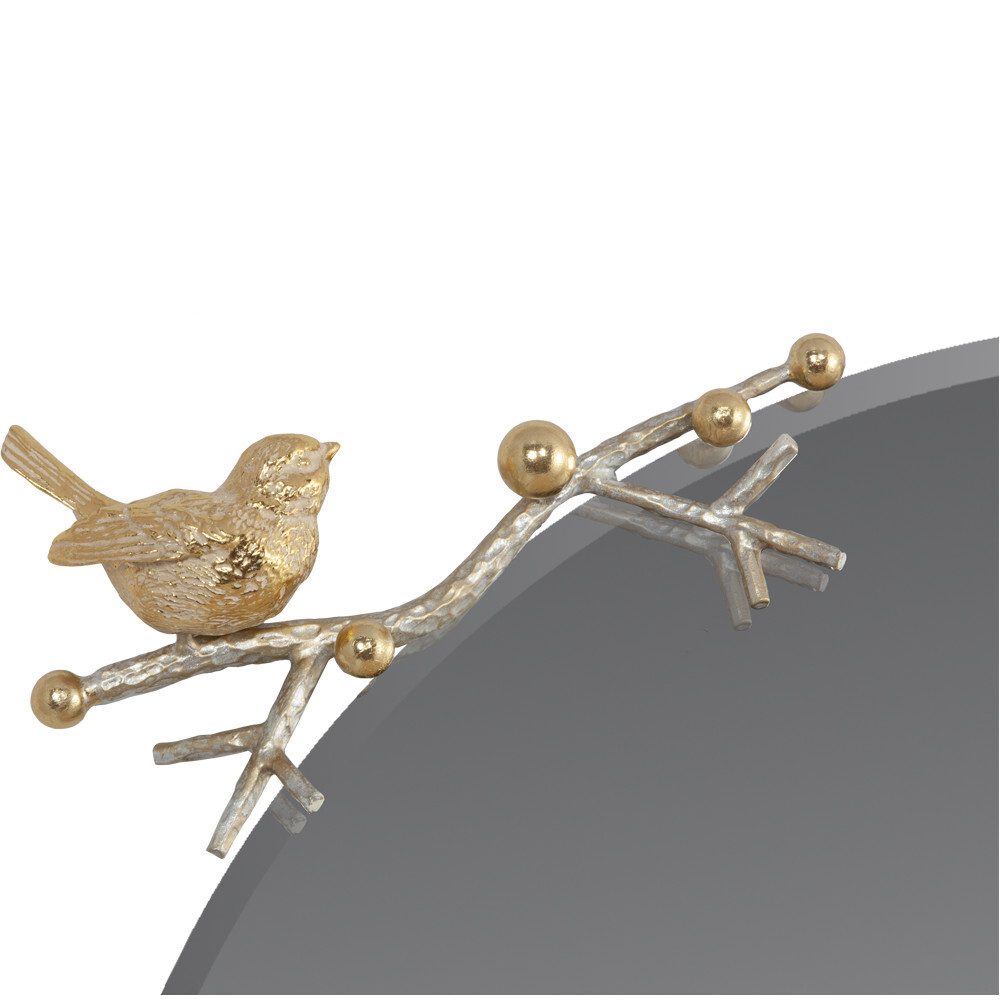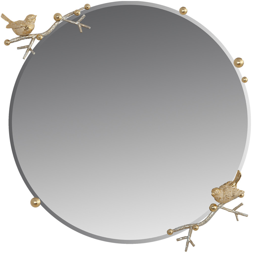 Зеркало «Терра» выглядит лаконично, элегантно и праздничноНа декоративных ветвях из кованой стали расположились маленькие птички, они словно только что вернулись из тёплого края и приветствуют весну, напевая свои звонкие мелодии. Это зеркало – тонкая и аккуратная ручная работа, в которую мастера фабрики BOGACHO действительно вложили душу. Для создания наших зеркал используются уникальные и безопасные материалы: это гарантия долговечности и качества. Диаметр зеркального полотна: 60см. Толщина: 4мм.