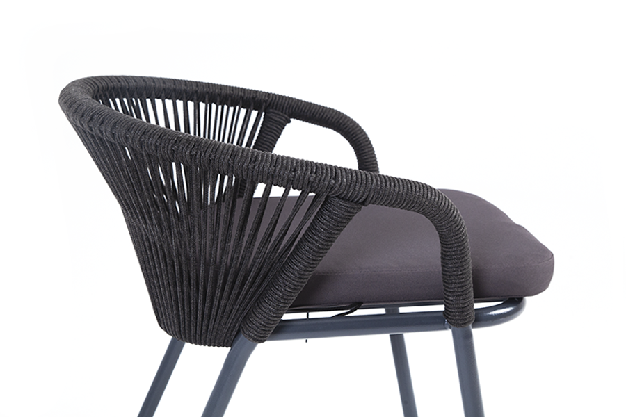 Оплетка выполнена в ручную современным материалом - круглым роупом. Это эластичные синтетические веревки из высокопрочных полиэфирных волокон, предназанченные для изготовления мебели. Цвет оплетки - темно-серый.
