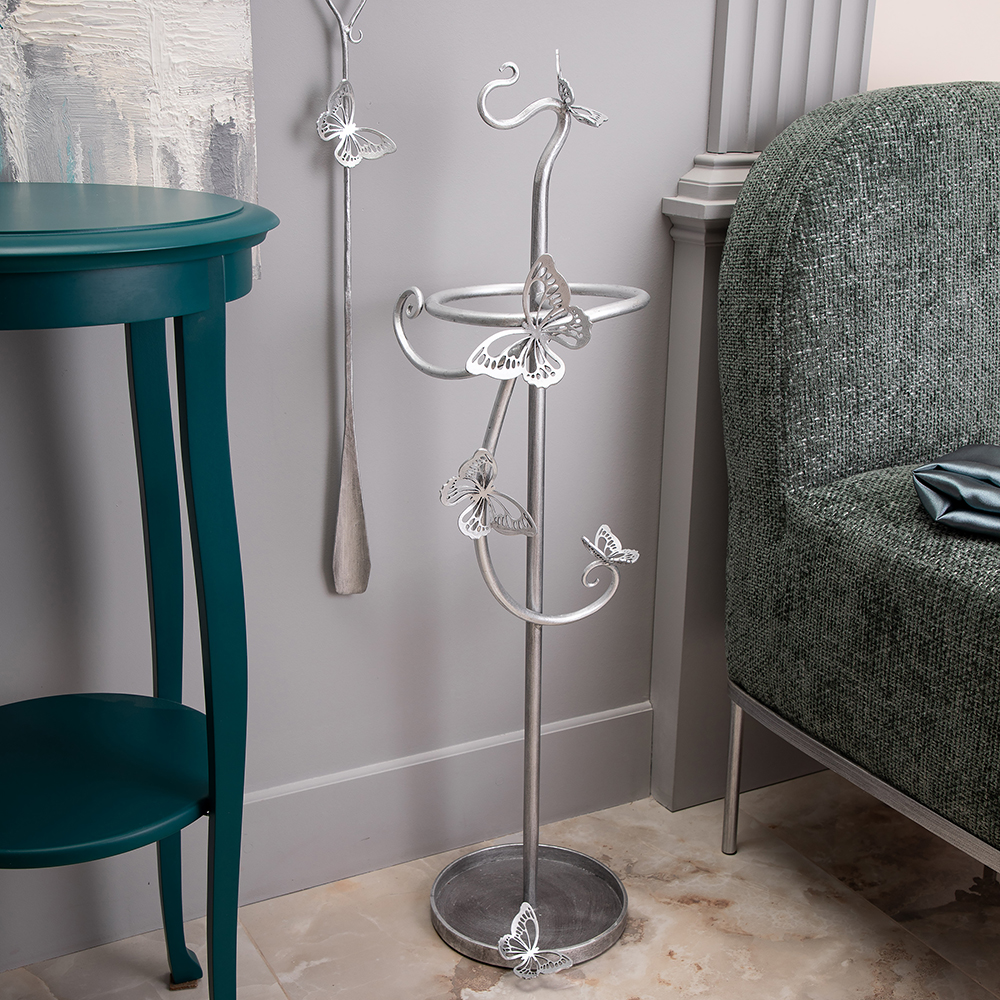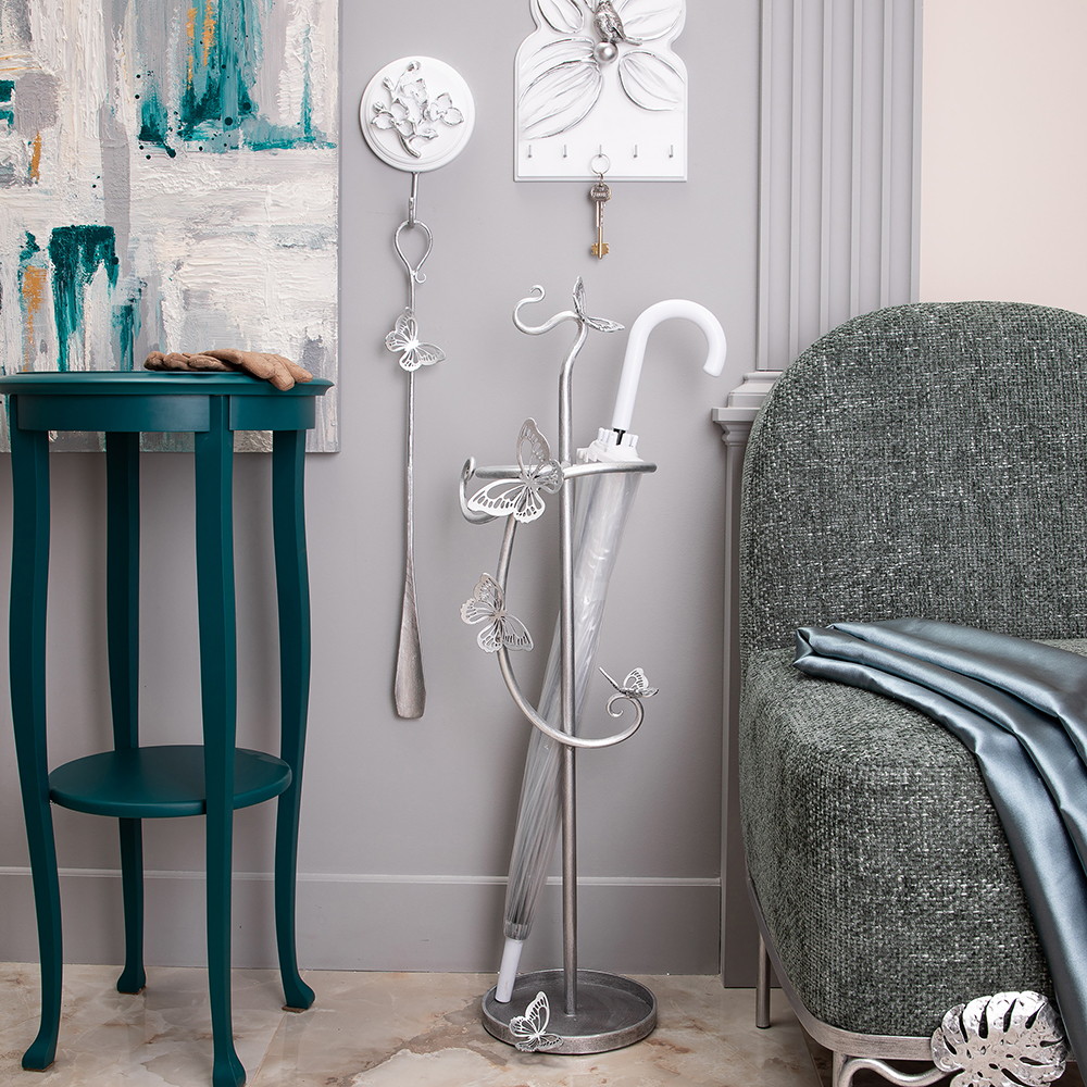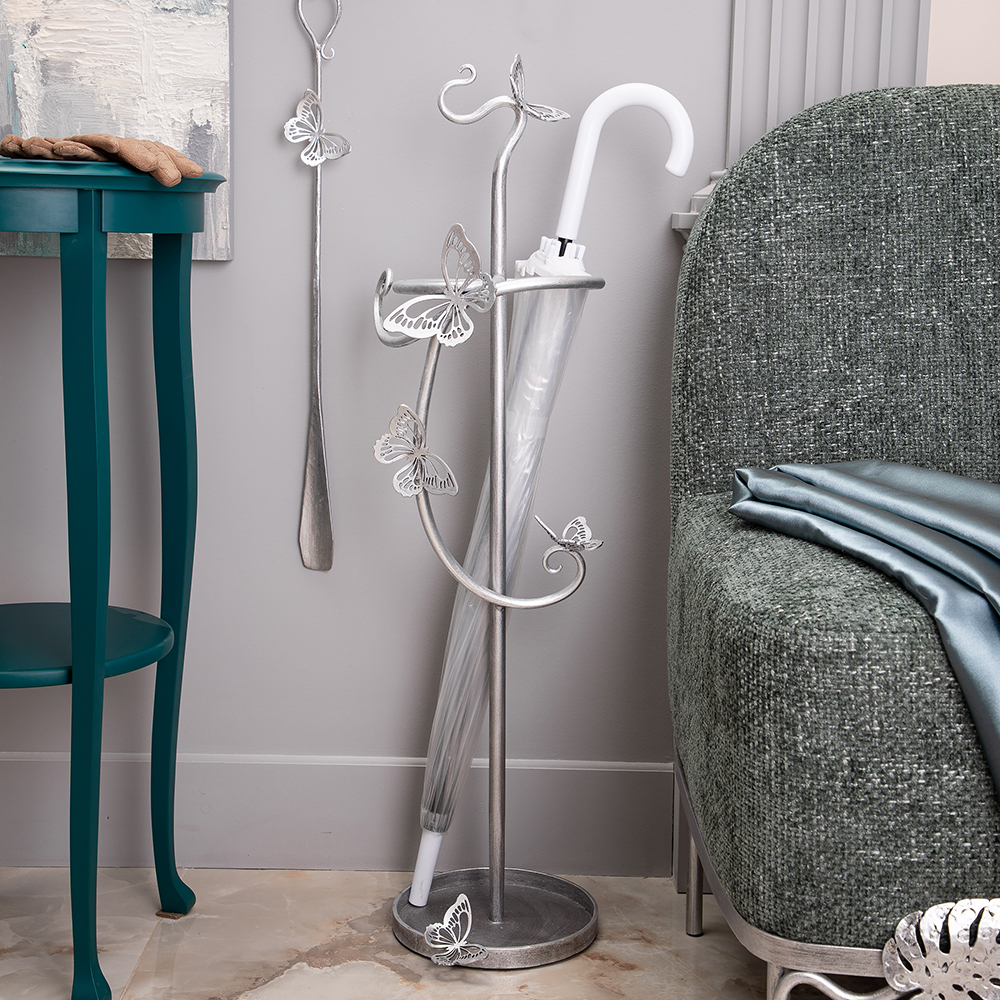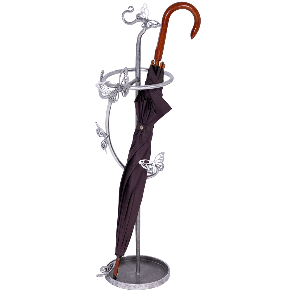 Зонтница из кованой стали Бабочка Эир. Подставка для зонтов BOGACHO это не просто отличное напоминание о защите от непогоды, но и незаменимый помощник в индивидуализации Вашего пространства. Подставка для зонтов изготовлена из легированной стали и выкована в нашей кузнице. Будьте уверены, Ваши гости не захотят уходить, пока не узнают, из какой поездки вы привезли такую изысканную вещь. Изделие приходит в собранном виде и не требует последующей сборки.