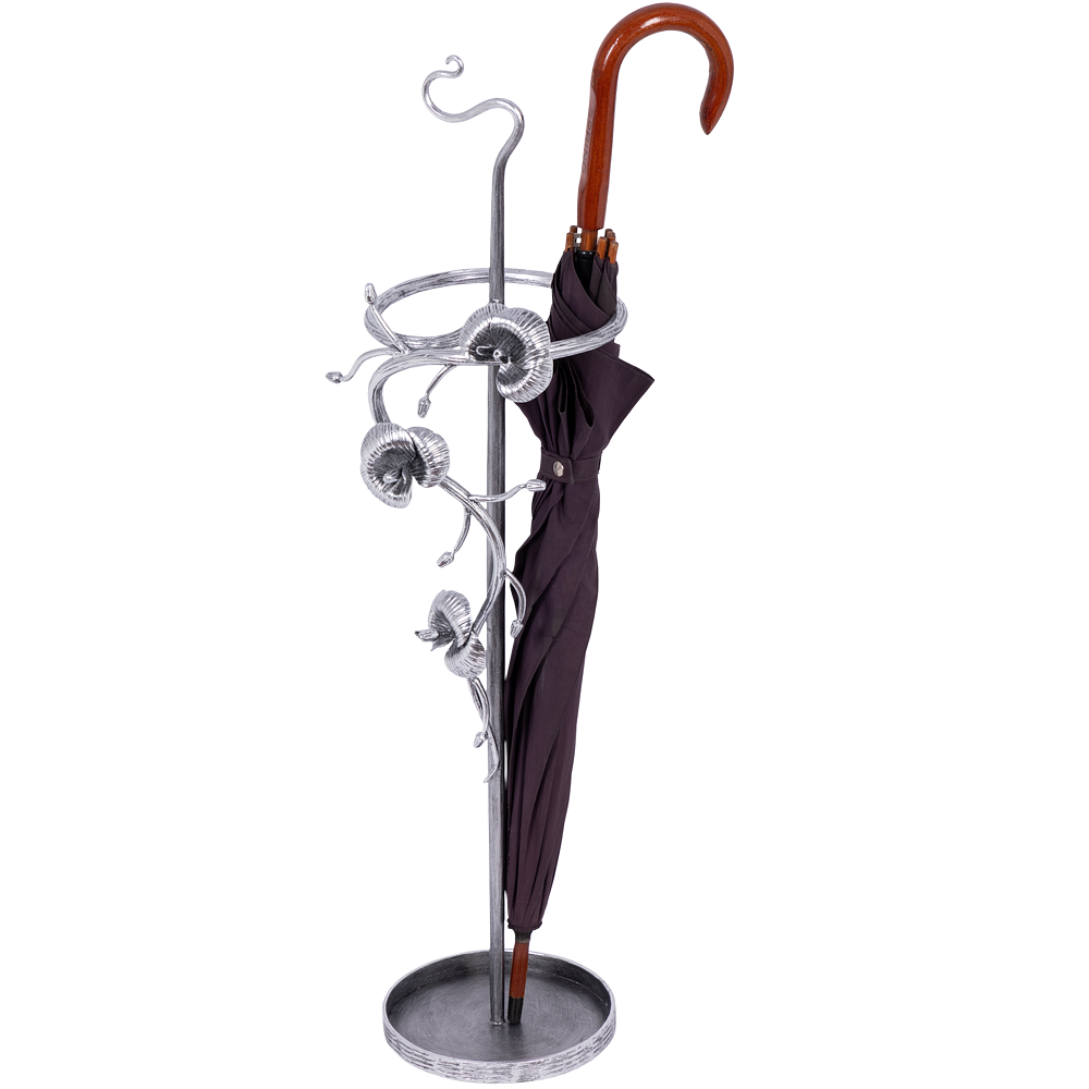 Зонтница из кованой стали Орхидея. Подставка для зонтов BOGACHO это не просто отличное напоминание о защите от непогоды, но и незаменимый помощник в индивидуализации Вашего пространства. Подставка для зонтов изготовлена из легированной стали и выкована в нашей кузнице. Будьте уверены, Ваши гости не захотят уходить, пока не узнают, из какой поездки вы привезли такую изысканную вещь. Изделие приходит в собранном виде и не требует последующей сборки.