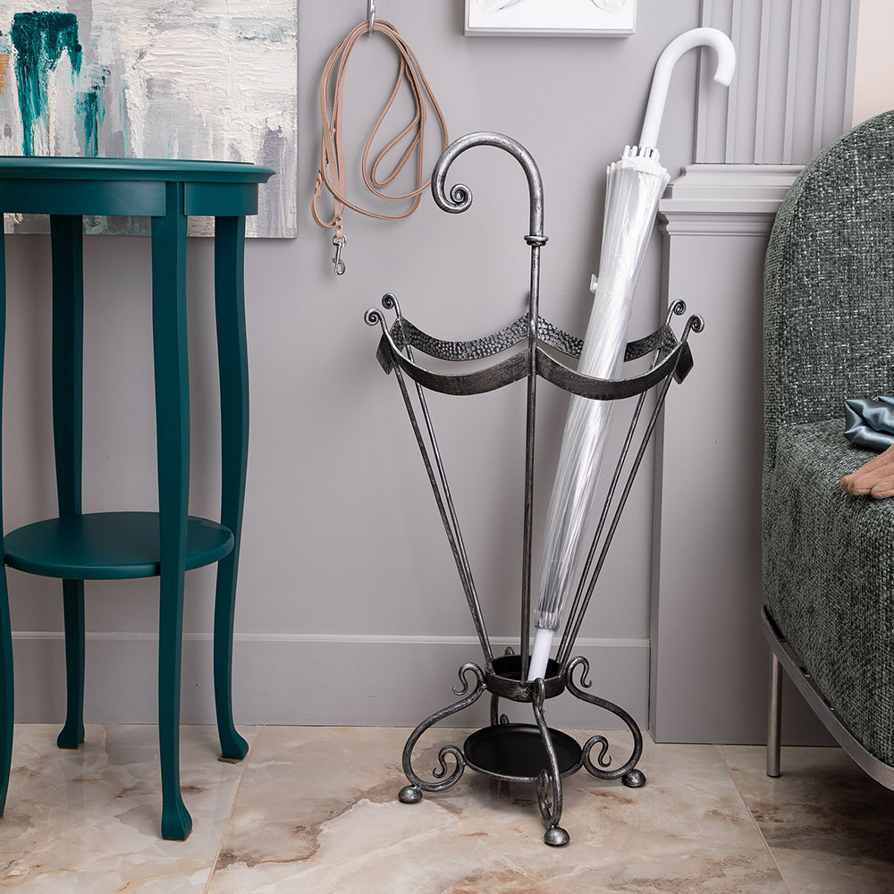 Подставка для зонтов BOGACHO - это не просто отличное напоминание о защите от непогоды, но и незаменимый помощник в индивидуализации Вашего пространства. Подставка для зонтов изготовлена из легированной стали и выкована в нашей кузнице. Будьте уверены, Ваши гости не захотят уходить, пока не узнают, из какой поездки вы привезли такую изысканную вещь. Изделие приходит в собранном виде и не требует последующей сборки.