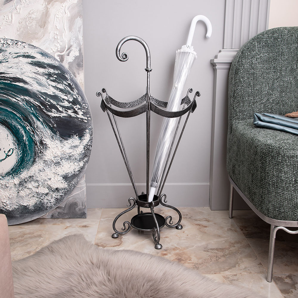 Подставка для зонтов BOGACHO - это не просто отличное напоминание о защите от непогоды, но и незаменимый помощник в индивидуализации Вашего пространства. Подставка для зонтов изготовлена из легированной стали и выкована в нашей кузнице. Будьте уверены, Ваши гости не захотят уходить, пока не узнают, из какой поездки вы привезли такую изысканную вещь. Изделие приходит в собранном виде и не требует последующей сборки.